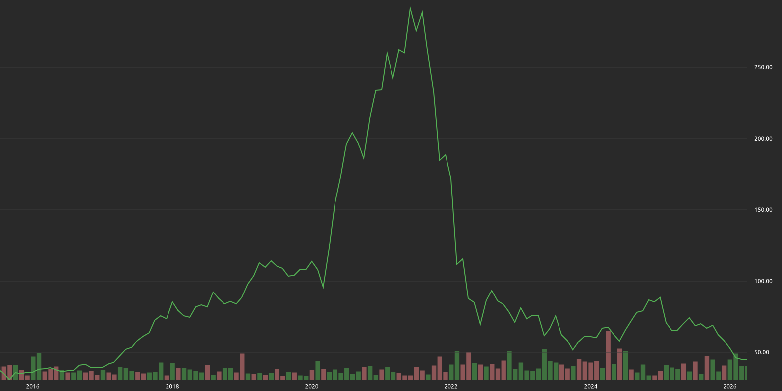 It's fair to say PayPal (PYPL) has been on a tumultuous ride over the last decade. This is reflected in its share price, which rose all the way up to just shy of $300 during the pandemic boom and subsequently fell all the way back down to below $50, where it continues to trade today.